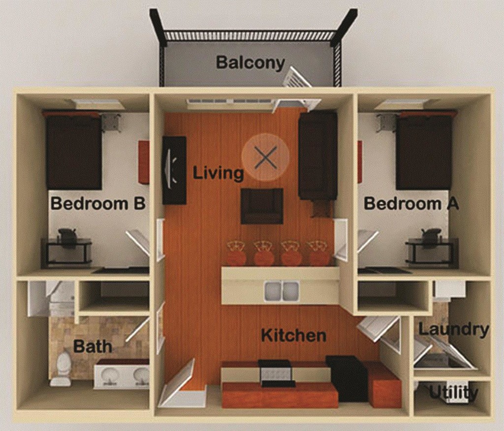 Apartment Model: 2x1$9852 Bedroom, 1 Bath, 755 sq ftAvailable Now![]()