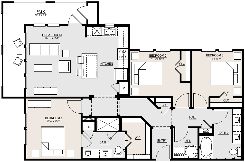 1 Bed, 1 Bath, 814-946 sq ftAvailable NowLargest 1 BedroomThis is the largest 1 Bedroom at this PropertyModel Gallery