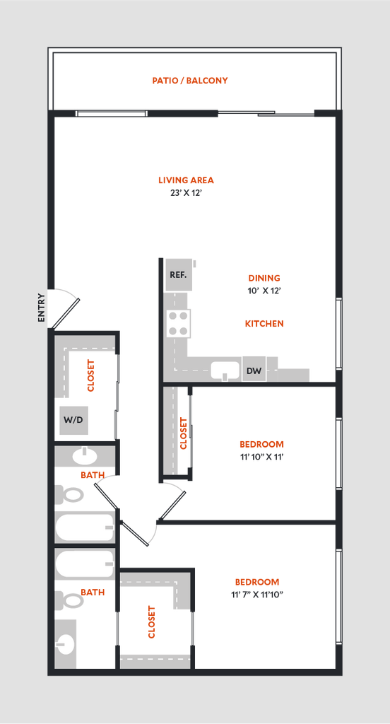 Apartment Model: Plan 2D2 Bedroom, 2 Bath, 1150 sq ftUnavailable![]()