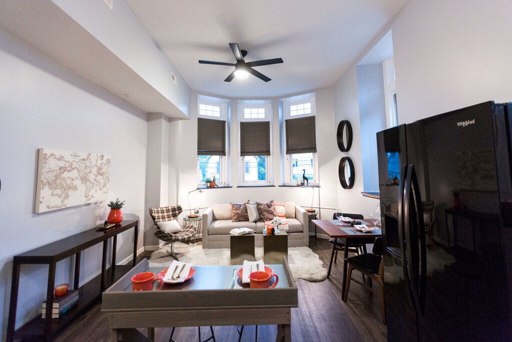 Come live in a castle! McDermott Lofts, a former school at 169 Elk Street (at Euclid Place) in Buffalo, has one unit available February 2021 and two units available March 2021. Rent a 1 Bedroom unit for just $1000-$1100/month, with stainless steel appliances and modern finishes. Security Deposit is waived ($0!) if tenant opts for Rhino Protection. Some off-street parking and ample on-street parking available. Utilities are the responsibility of the tenant. Laundry is onsite. The building is secured via fob access and cameras. Kayak, bike storage, and personal storage on site. Tenant Activity Center with ping pong table and lounge boasting great views of downtown! Minutes to city center with exceptionally easy access to I-190. Walkable neighborhood with coffee shops, restaurants, Larkinville, and 500 Seneca all nearby. Pet friendly -- no breed or size restrictions. Come experience an affordable, trendy neighborhood in Buffalo!