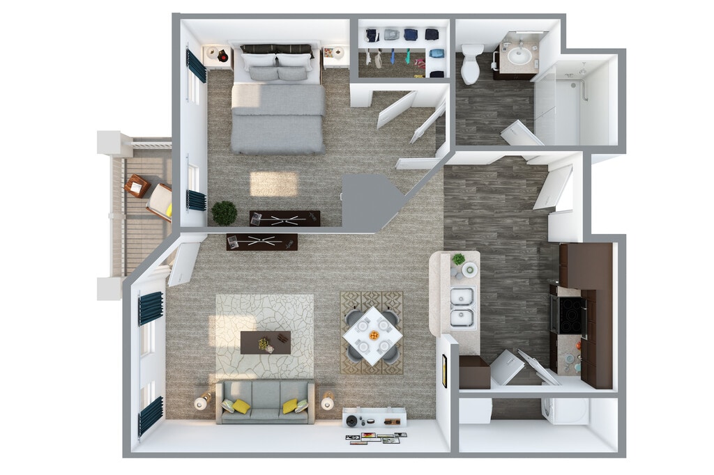 1 Bed, 1 Bath, 701 sq ftModel Gallery