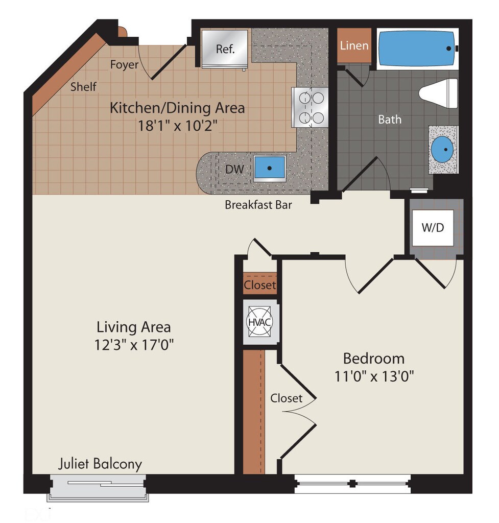 Studio, 1 Bath, 498 sq ftModel Gallery