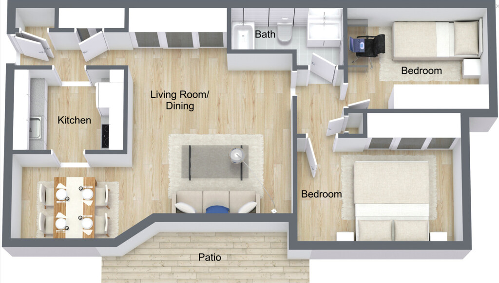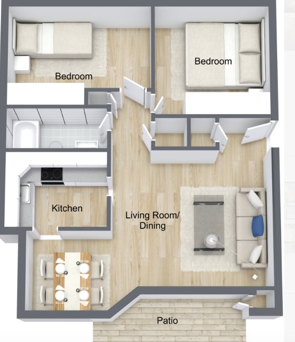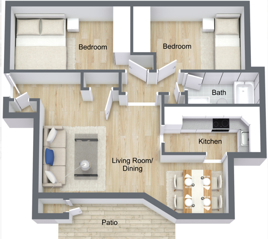 2 Beds, 1 Bath, 982 sq ftAvailable NowLargest 2 BedroomThis is the largest 2 Bedroom at this PropertyModel Gallery