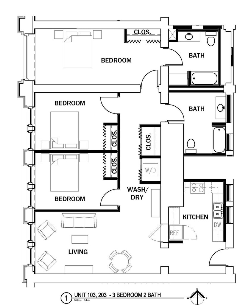 2Bd/1Bth - Floorplan 10 3 Bedrooms
