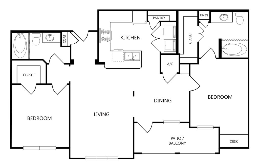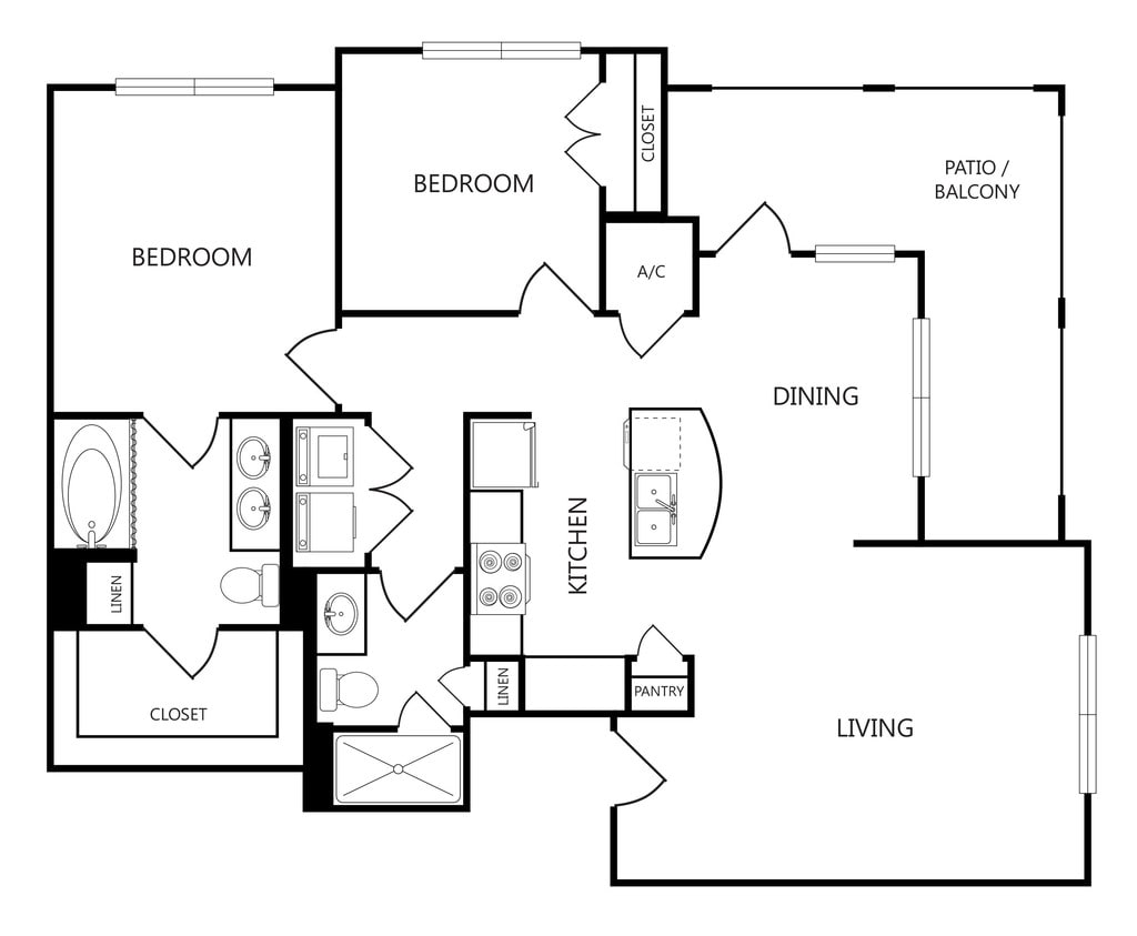 1 Bed, 1 Bath, 760 sq ftAvailable NowModel Gallery