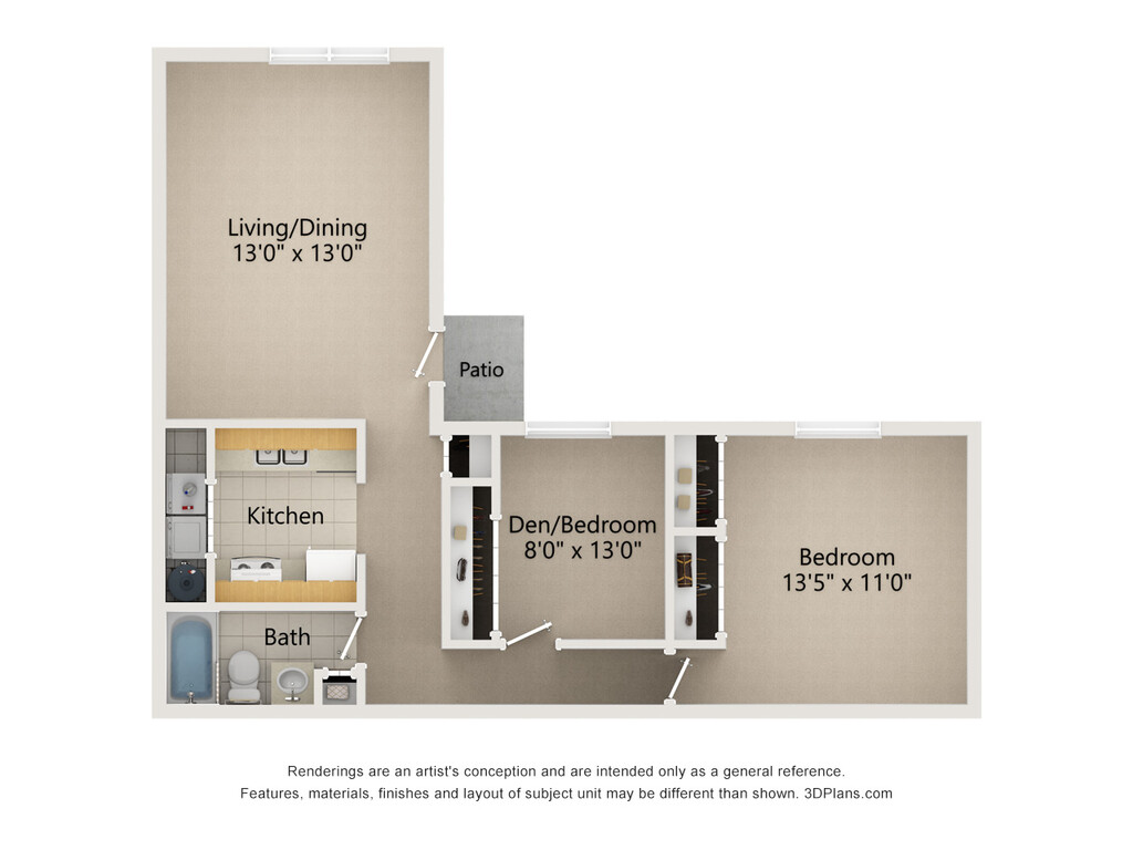 Apartment Model: 1 Bed + Den 1 Bath (1D)$1,1751 Bedroom, 1 Bath, 812 sq ftUnavailable1 Bed + Den 1 Bath (1D) - Floorplan 1 2 Bedrooms