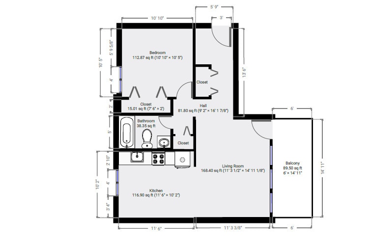 1 Bed, 1 Bath, 670 sq ftModel Gallery