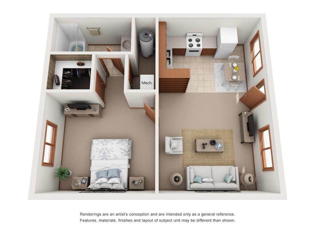 2 Beds, 1 Bath, 660 sq ftAvailable June 15, 2026Model Gallery