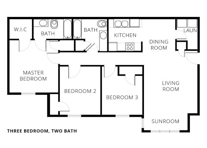 3 Bedroom - Floorplan 1 Apartment Unit: 104-CApartment Model: 3 Bedroom3 Bedroom, 2 Bath, 1092 sq ftAvailable Now