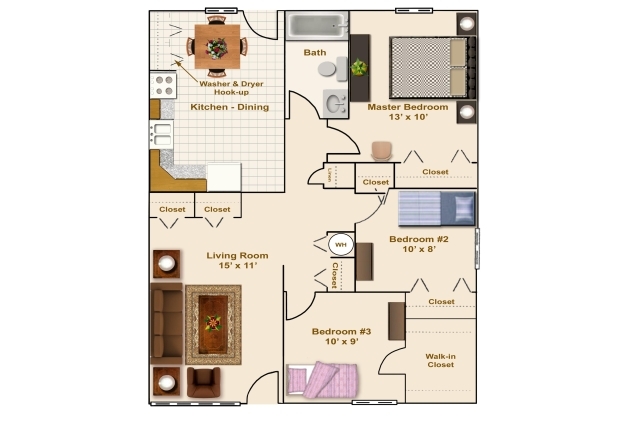 3 Beds, 1 Bath, 952 sq ftModel Gallery