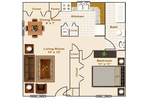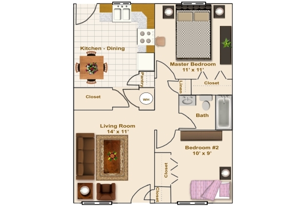 2 Beds, 1 Bath, 720 sq ftModel Gallery