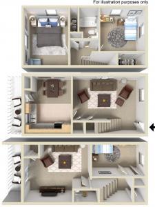 3 Bedroom Townhouse (3 level) - Floorplan 2 3 Bedroom Three Level
