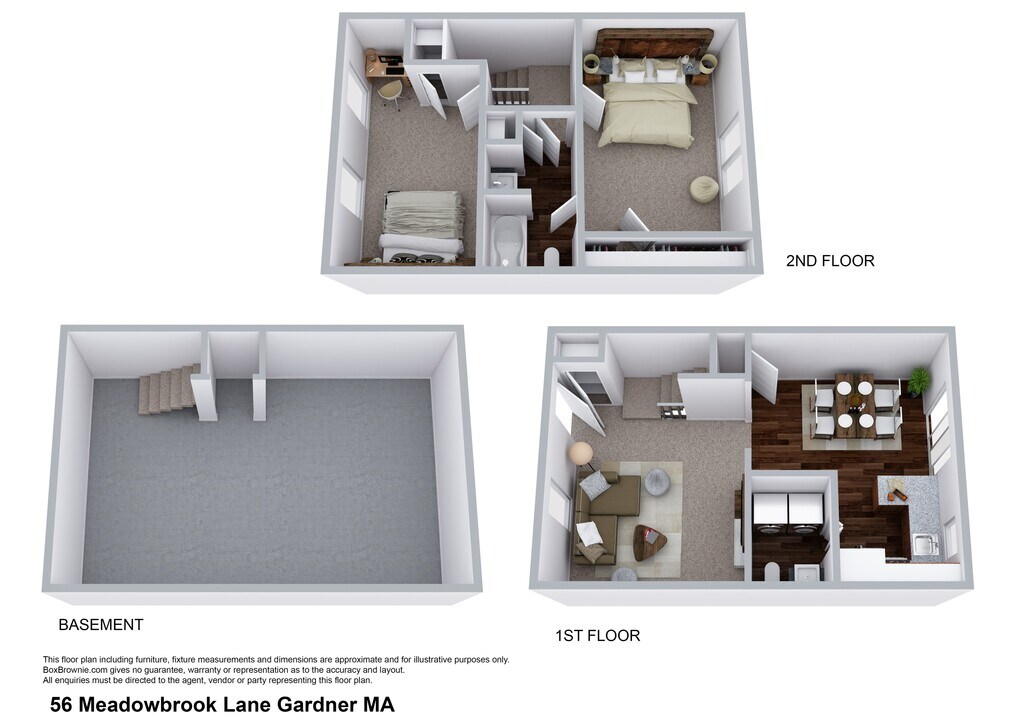 August 6, 2015We live in a rented townhouse complex. Two bedroom, 1 1/2 bath, kitchen(very small) and living room dining area open concept. This could be a nice place to live if it were properly taken care of. Thing is we've been here 8 years and can get no improvements to the apartment unless we move into another unit that has been vacated and redone but then we would lose our spot. When the ceiling leaked because of the roof the just painted the ceiling. Next rainstorm stain on ceiling is back. During the ...winter months the walks were not snowblown or shoveled on time so ice built up. Also not sanded. A neighbor went and got sand that we used. Can't paint the walls ourselves, they need it. Carpet is worn. Disposal backs up into the dishwasher and we're told we have to run it at least once a week. We pay the electricity. We are not the only one's with this problem. We have a cellar we can't use due to the smell and they gave us a humidifier that we have to run constantly at our expense. They let people and friends park anywhere, no assigned parking. Oh and the rent just went up for the second time in a year. Oh they did put nice new fronts steps on each apartment, but should have replaced the back ones with holes in them first and replace the roof.Read MoreReview from Apartments.com