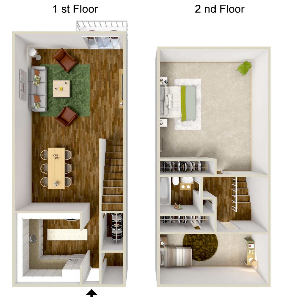 Apartment Model: One Bedroom, One and a half Bath TH1 Bedroom, 1.5 Bath, 750 sq ftUnavailableFloor plans are artist's rendering. All dimensions are approximate. Actual product and specifications may vary in dimension or detail. Not all features are available in every rental home. Prices and availability are subject to change. Base rent is based on monthly frequency. Additional fees may apply, such as but not limited to package delivery, trash, water, amenities, etc. Deposits vary. Please see a representative for details.