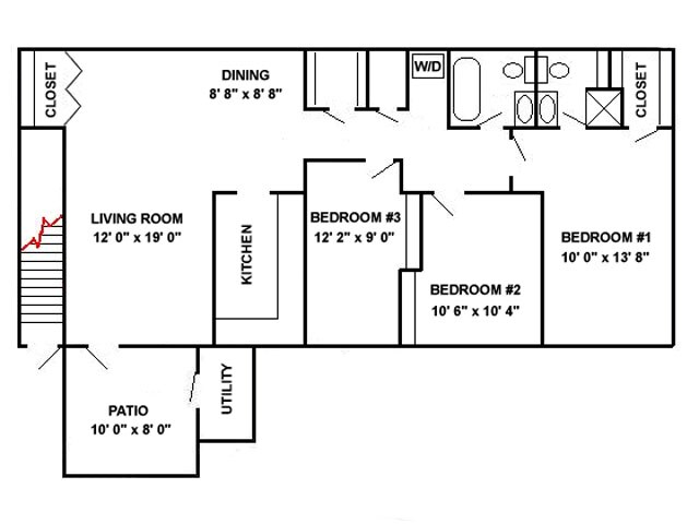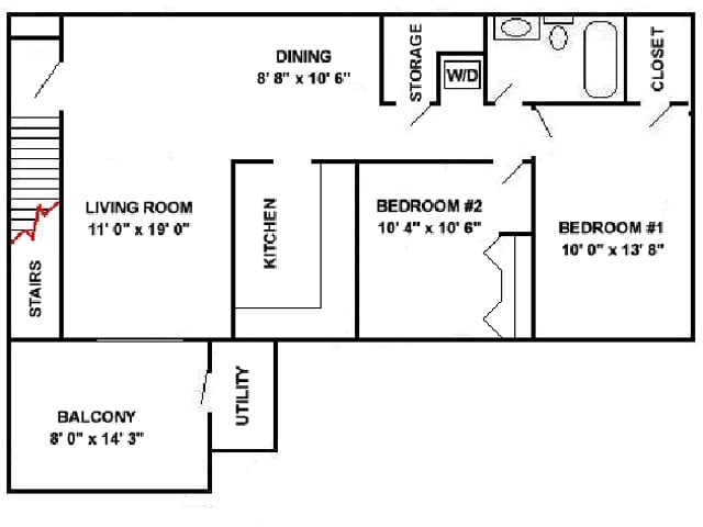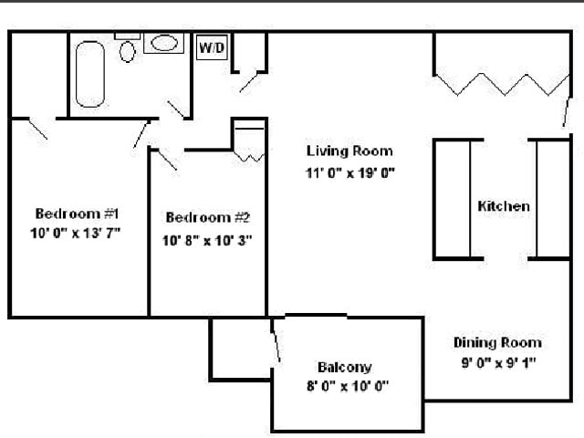 2 Beds, 1 Bath, 960 sq ftLargest 2 BedroomThis is the largest 2 Bedroom at this PropertyModel Gallery