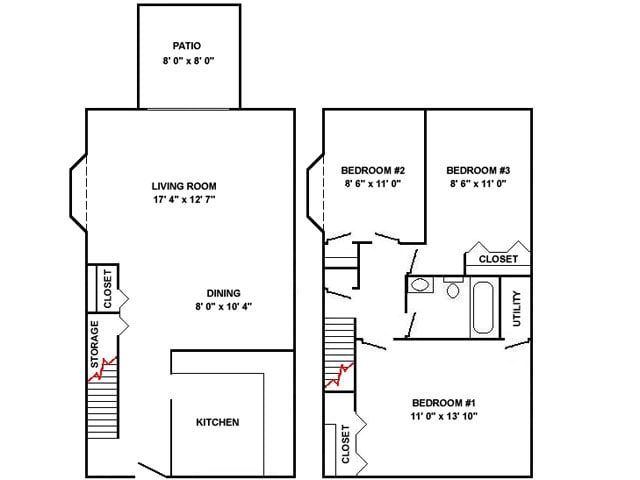 3 Beds, 2 Baths, 1155 sq ftModel Gallery