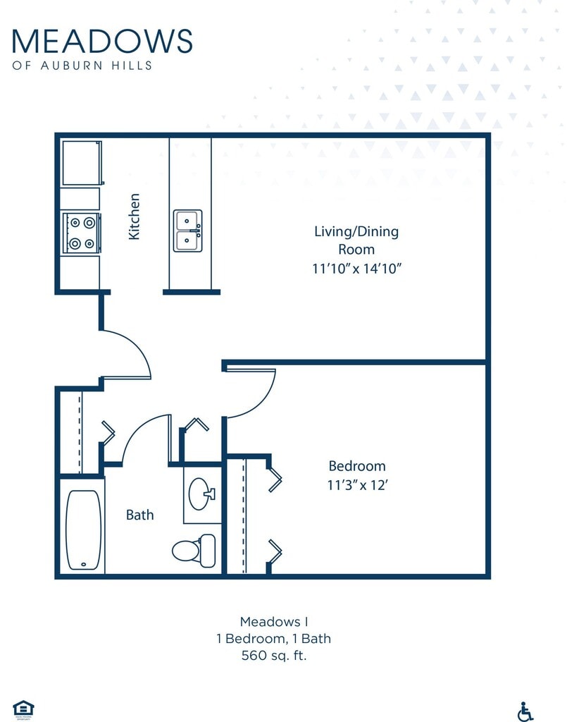 Apartment Model: 1 Bedroom Apartment *Waitlist*$9991 Bedroom, 1 Bath, 560 sq ftAvailable January 1, 2026![]()