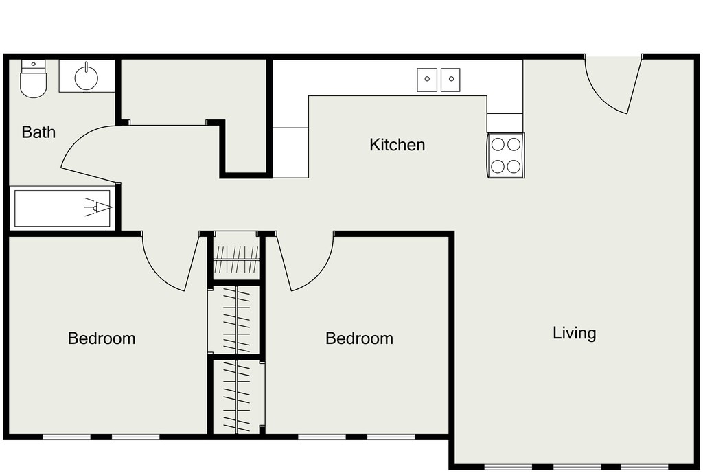 One Bedroom One Bathroom - Floorplan 1 2 Bedrooms
