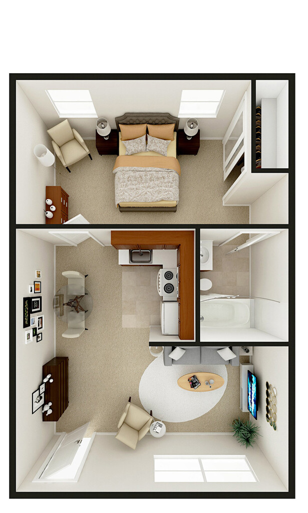 1 Bed, 1 Bath, 440-470 sq ftModel Gallery