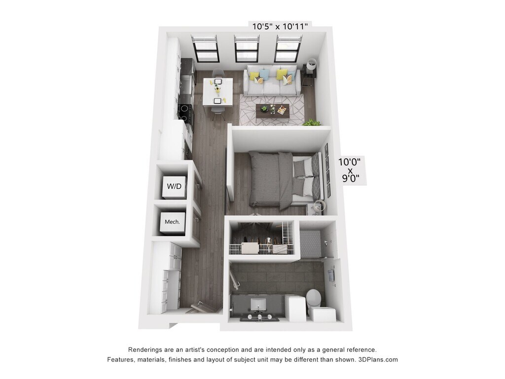 Apartment Unit: 151Apartment Model: S1F$2,063Studio, 1 Bath, 1072 sq ftAvailable Now1 Bedroom