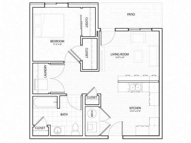 Apartment Model: A1 - 40 - Income Restricted$7651 Bedroom, 1 Bath, 640 sq ftAvailable November 15, 2025![]()