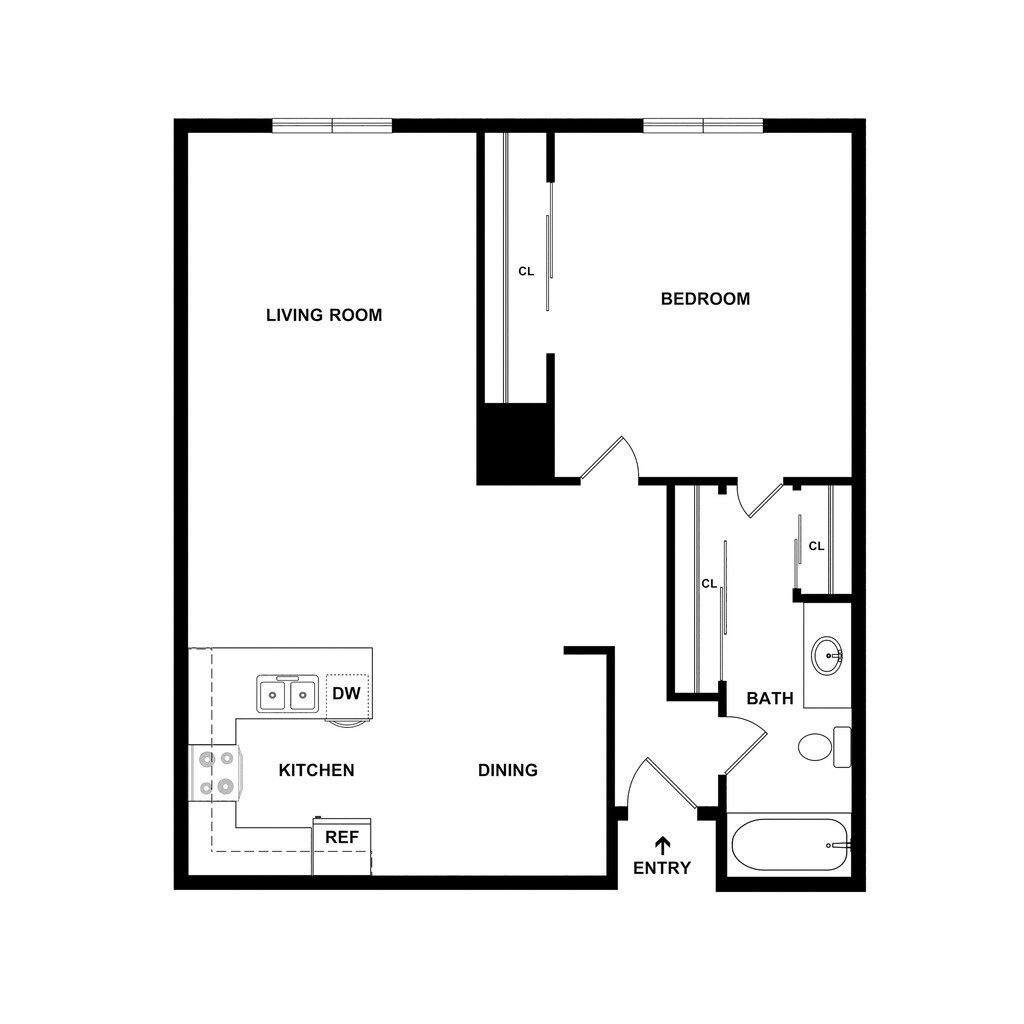 1 Bed, 1 Bath, 665 sq ftAvailable NowModel Gallery