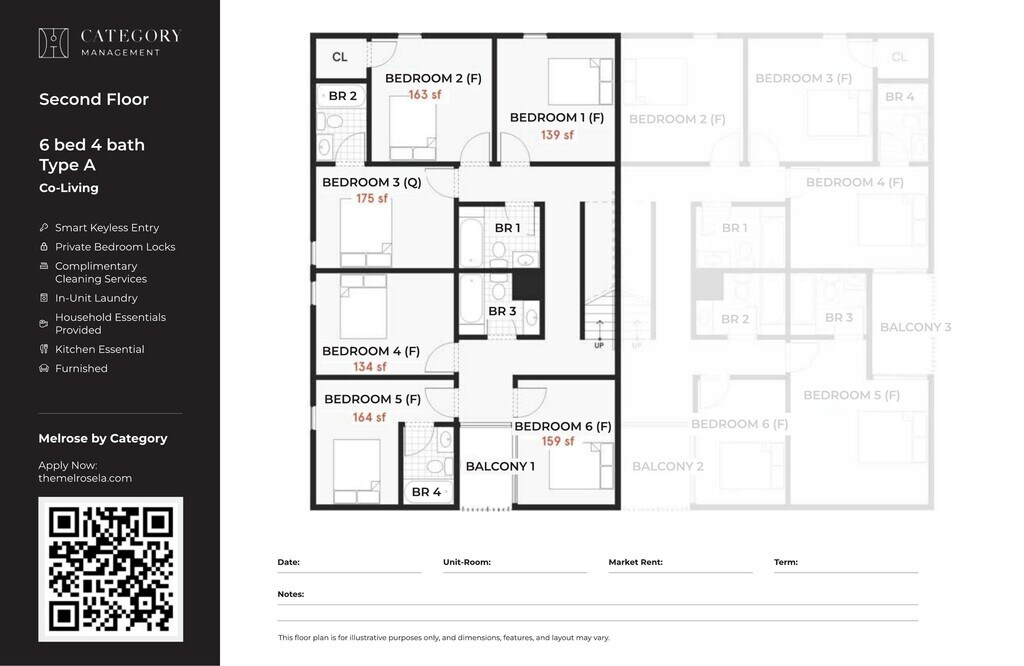 6 Bed 4 Bath - A - Floorplan 1 Apartment Unit: Melrose-2Apartment Model: 6 Bed 4 Bath - AFrom $1,2011 Bedroom, 1 Bath, 150 sq ftAvailable Now