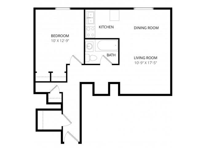 Apartment Model: One Bedroom1 Bedroom, 1 Bath, 460 sq ftUnavailableOne Bedroom - Floorplan 1 Large One Bedroom