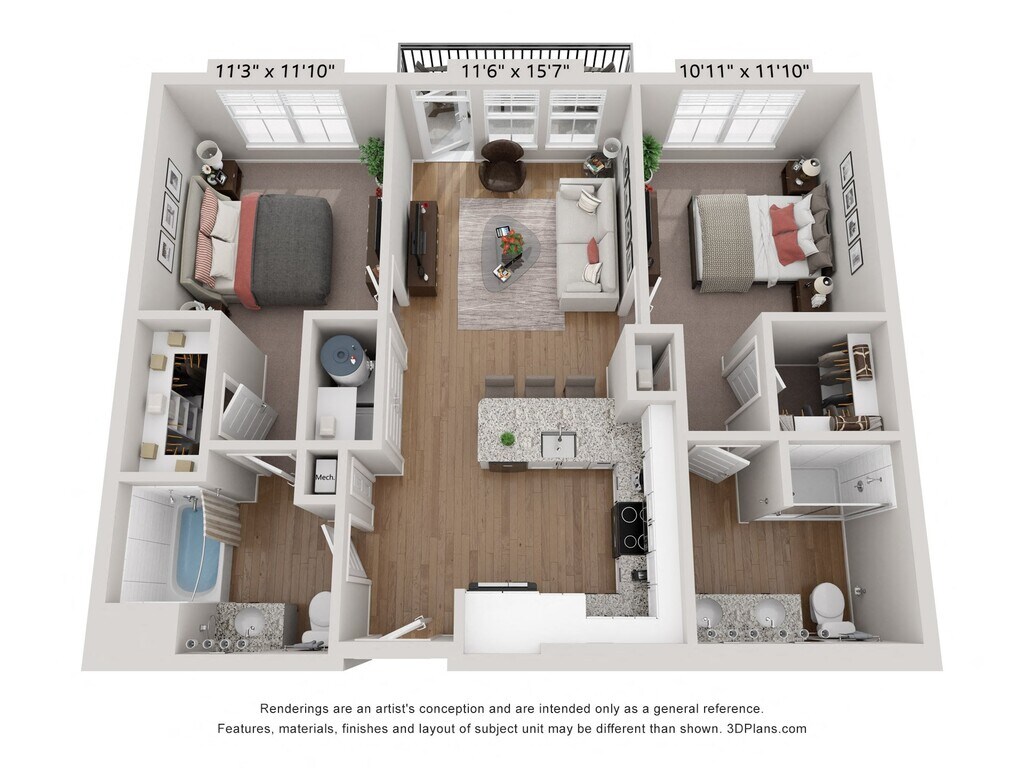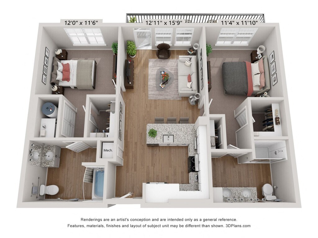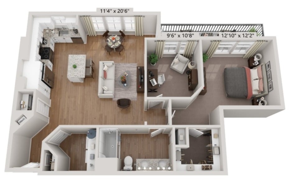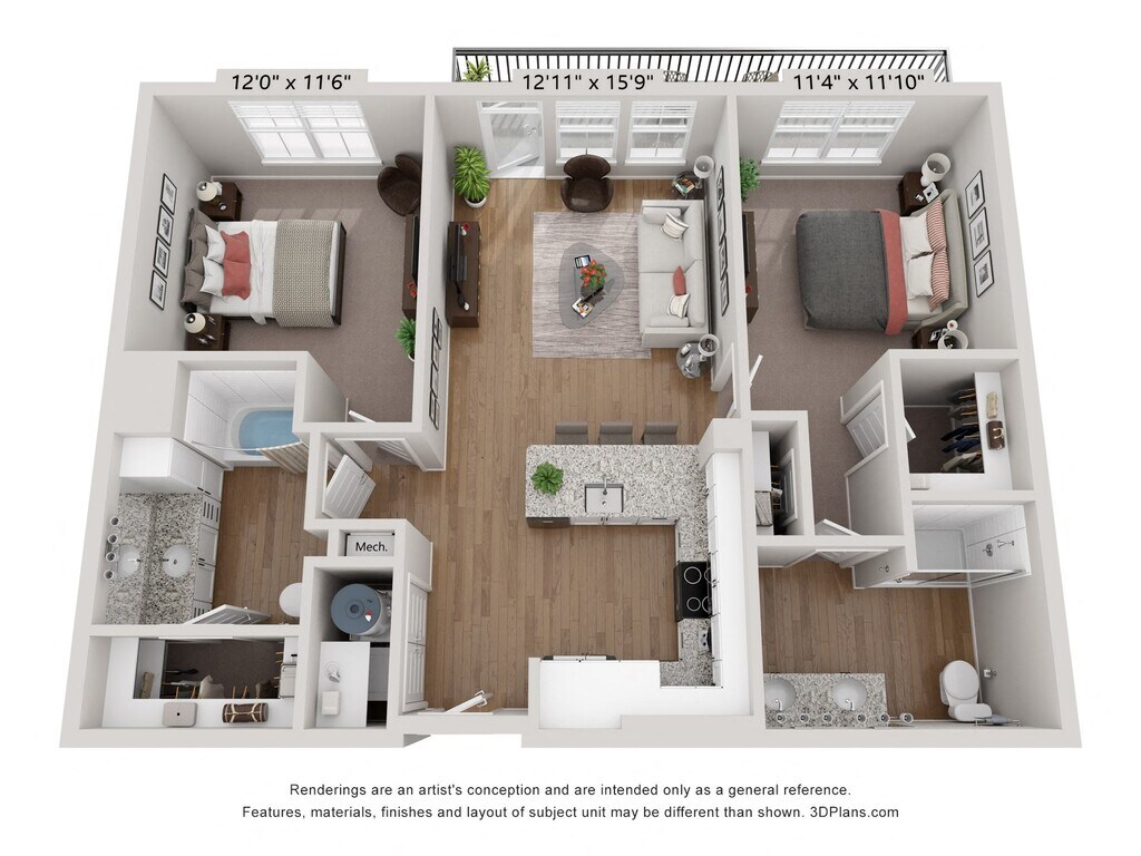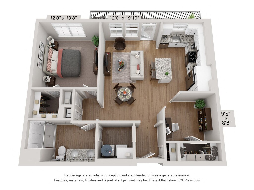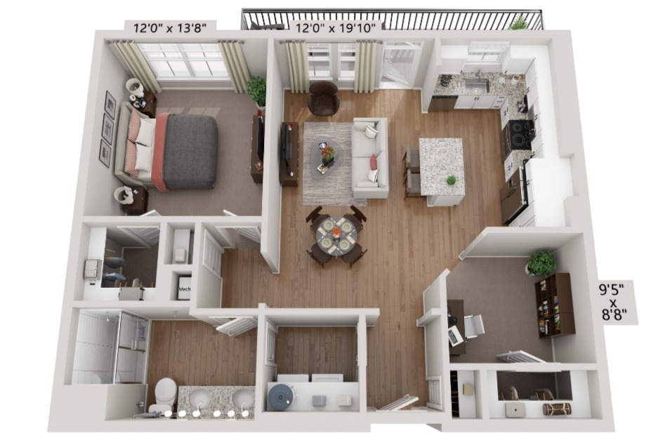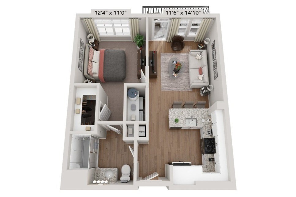 Apartment Model: A4 - AzureFrom $1,8981 Bedroom, 1 Bath, 893 sq ftAvailable Now![]()