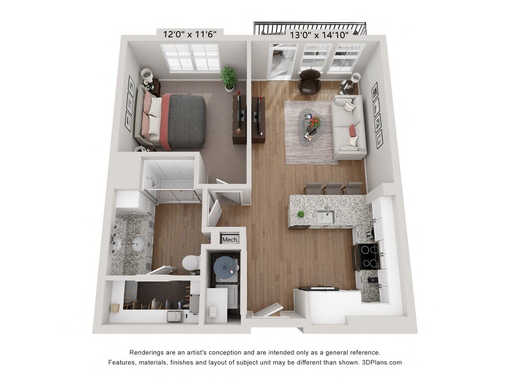 Apartment Model: A3 - Cobalt$1,7731 Bedroom, 1 Bath, 678 sq ftAvailable Now![]()