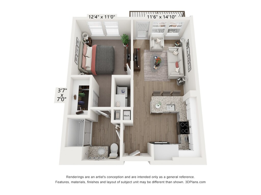 Apartment Model: A3 - CobaltFrom $1,5181 Bedroom, 1 Bath, 676 sq ftAvailable Now![]()