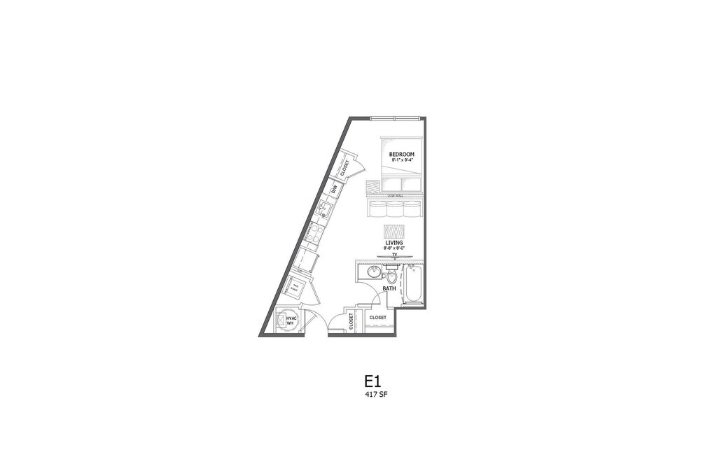 Apartment Model: E11 Bedroom, 1 Bath, 417 sq ftUnavailableE1 - Floorplan 1 Floorplan E2