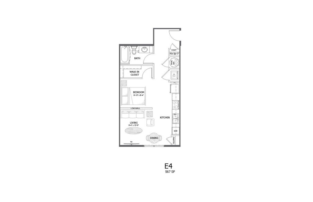 Apartment Model: E41 Bedroom, 1 Bath, 567 sq ftUnavailableE4 - Floorplan 1 Floorplan A3
