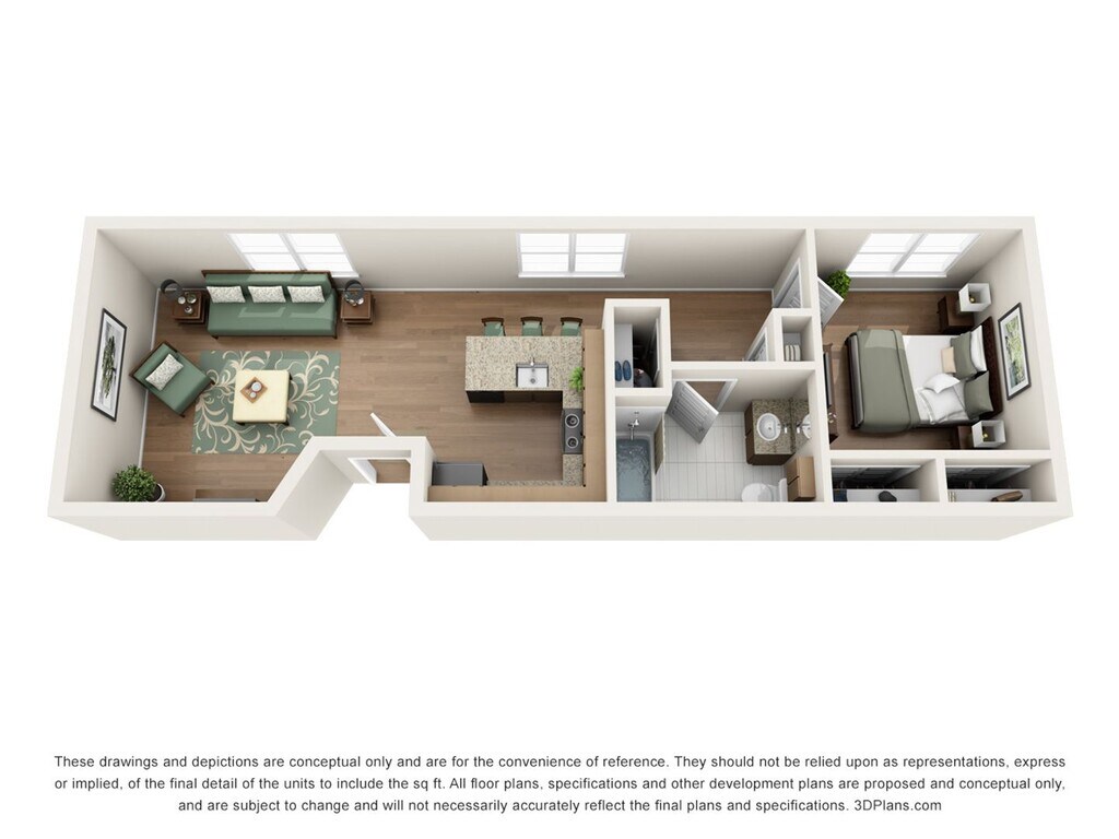 T1 - Image 3 Apartment Unit: 438Apartment Model: T1$1,9951 Bedroom, 1 Bath, 654 sq ftAvailable NowFloorplan P
