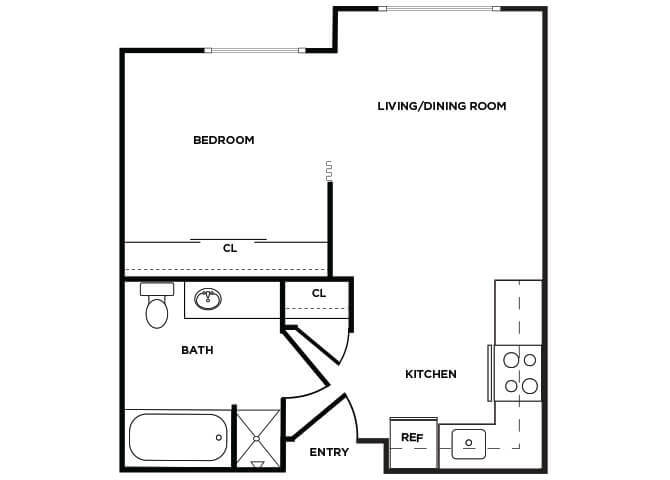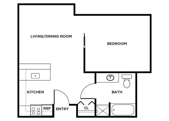 1 Bed, 1 Bath, 431 sq ftModel Gallery