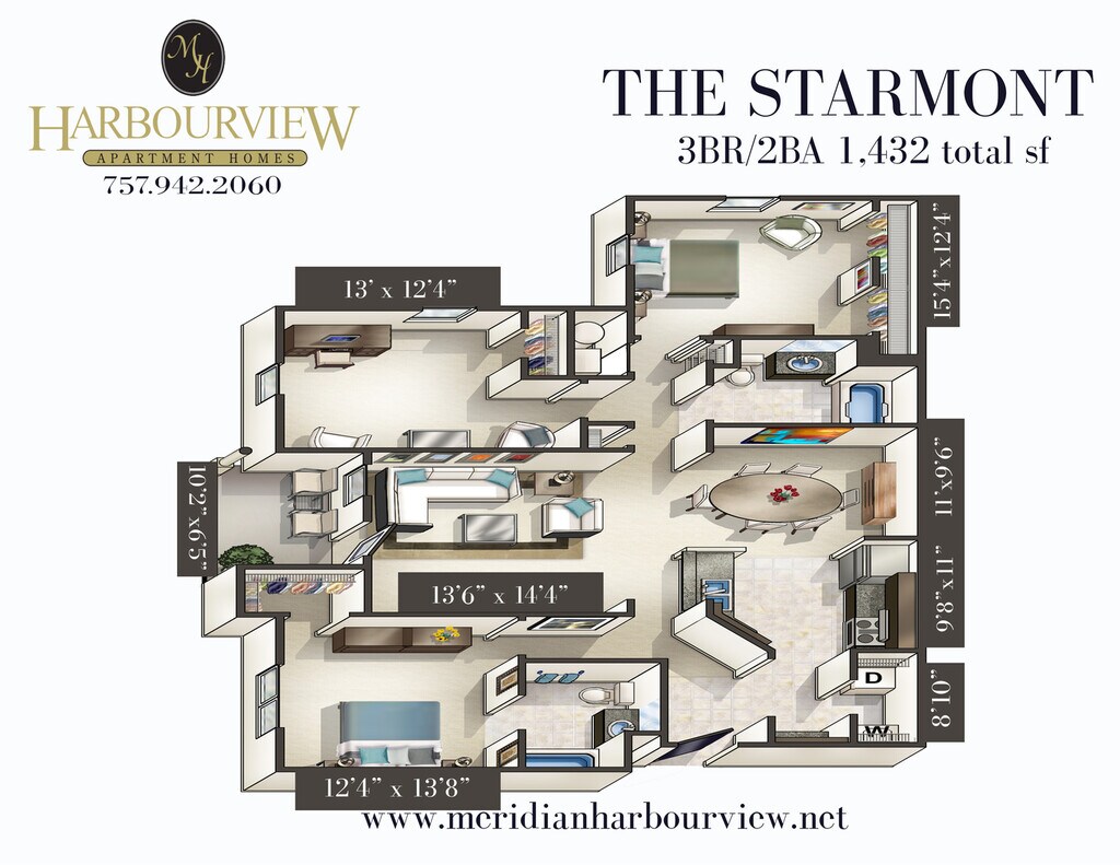 3 Beds, 2 Baths, 1432 sq ftTotal Monthly PriceAvailable May 16Total Monthly Price