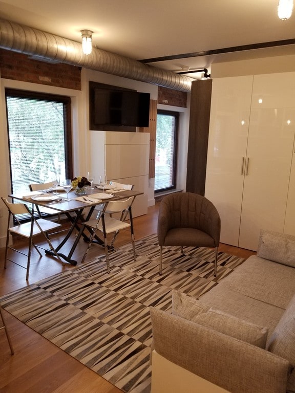 Meridian Lofts, Luxury Loft Apartments located in the Heart of Islip. Upscale Furnished Studios, One and Two Bedroom Lofts. Close to Shopping, Fine Dining, Entertainment, Islip Movie Theater, Starbucks, Southern State Parkway, Sunrise Hwy, LIRR, Hospitals. Touro Law School. Heat and AC included. Washer and dryers in All units, Murphys Bed, Flat Screen TV , Dining Table with chairs are included in Studio with plenty of storage. Move in furnished studio by Sept 1st receive a $500 Gift card to any of BRG Restaurants http://brgroup.biz/locations.php