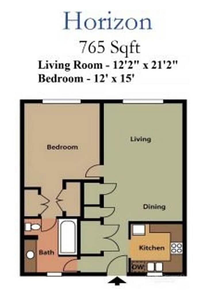 Apartment Model: Horizon 1 Bed 1 Bath - Non-Pet1 Bedroom, 1 Bath, 765 sq ftAvailable Now![]()
