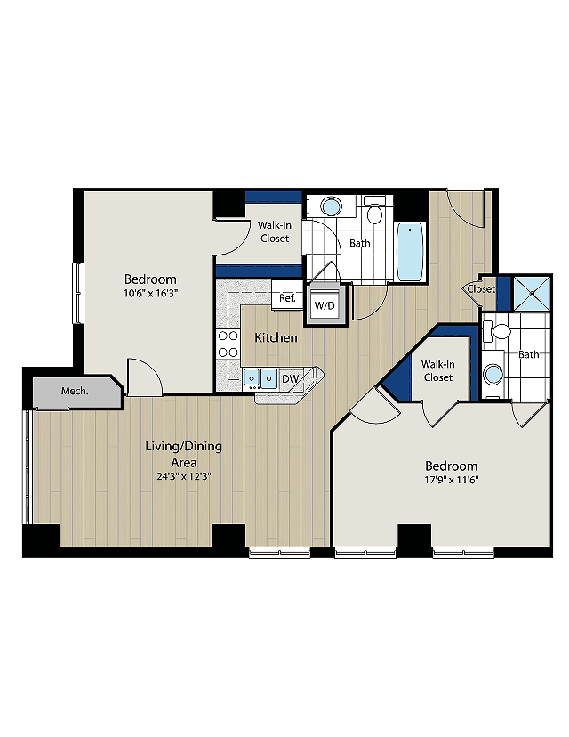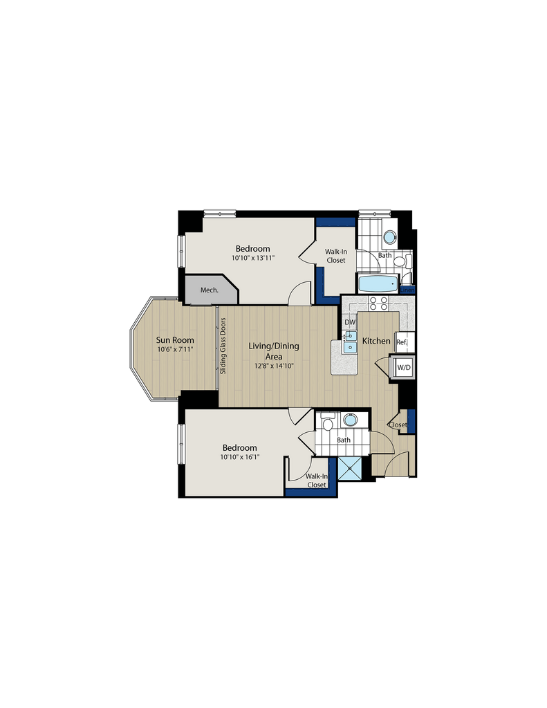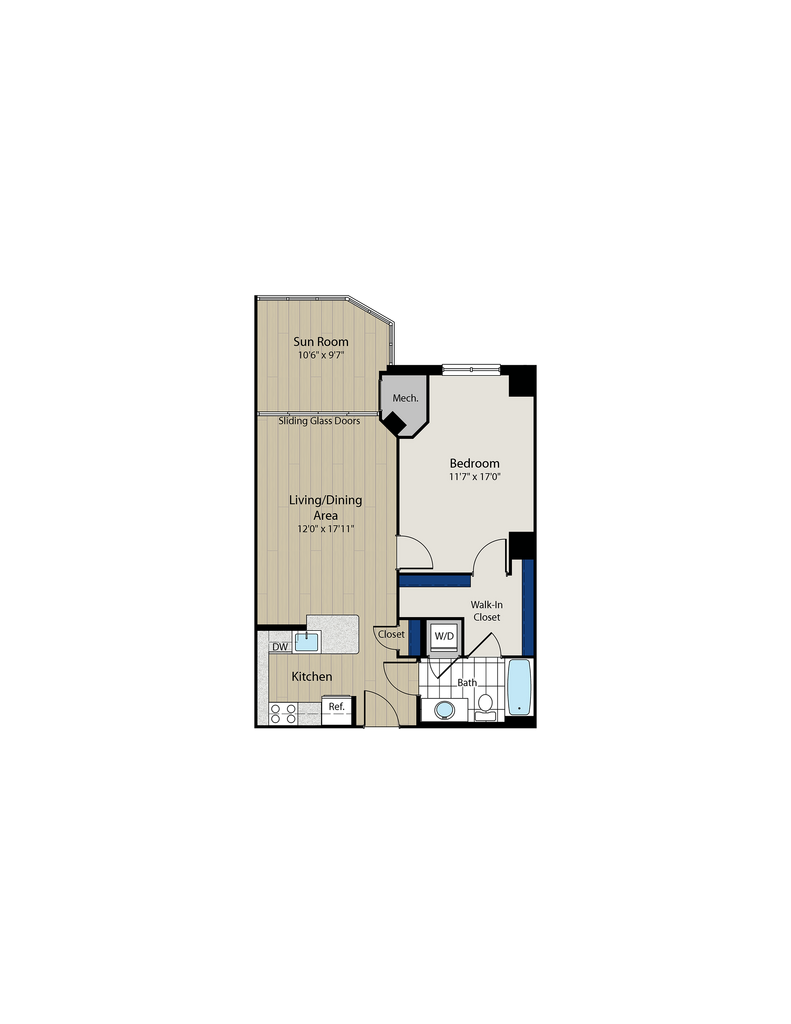 Apartment Model: Potomac$2,1281 Bedroom, 1 Bath, 723 sq ftAvailable Now![]()