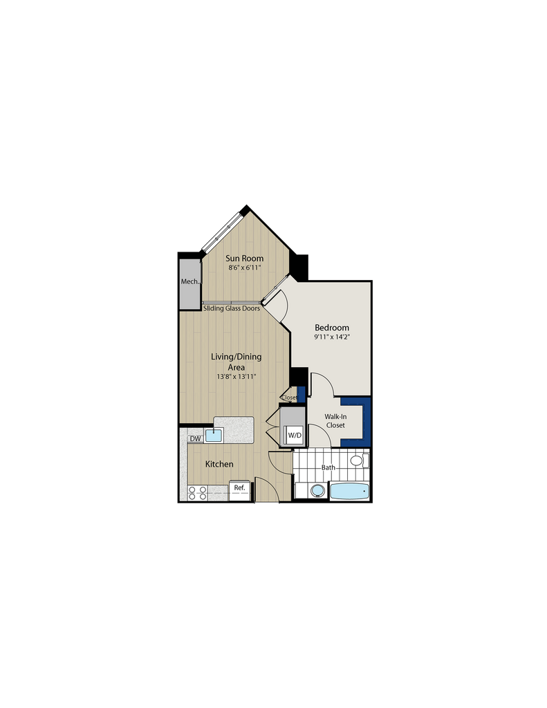 1 Bed, 1 Bath, 723 sq ftAvailable NowModel Gallery