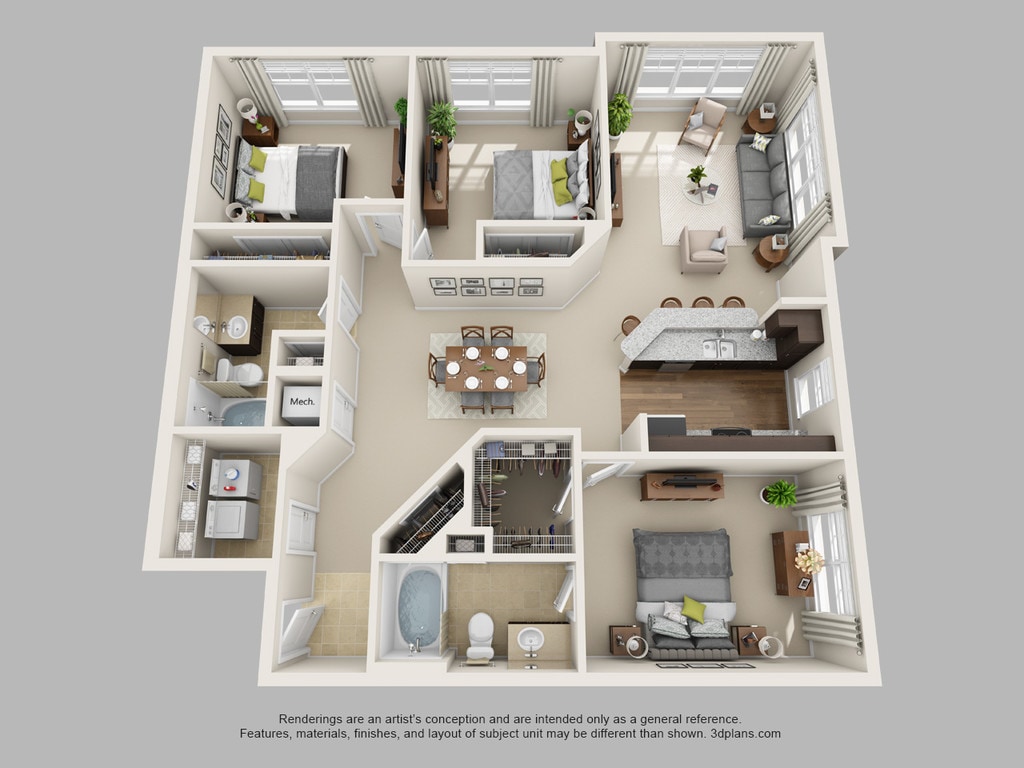1 Bedroom to 3 Bedroom Apartments at Meridian at Harrison Pointe currently range from $1,295 to $2,530