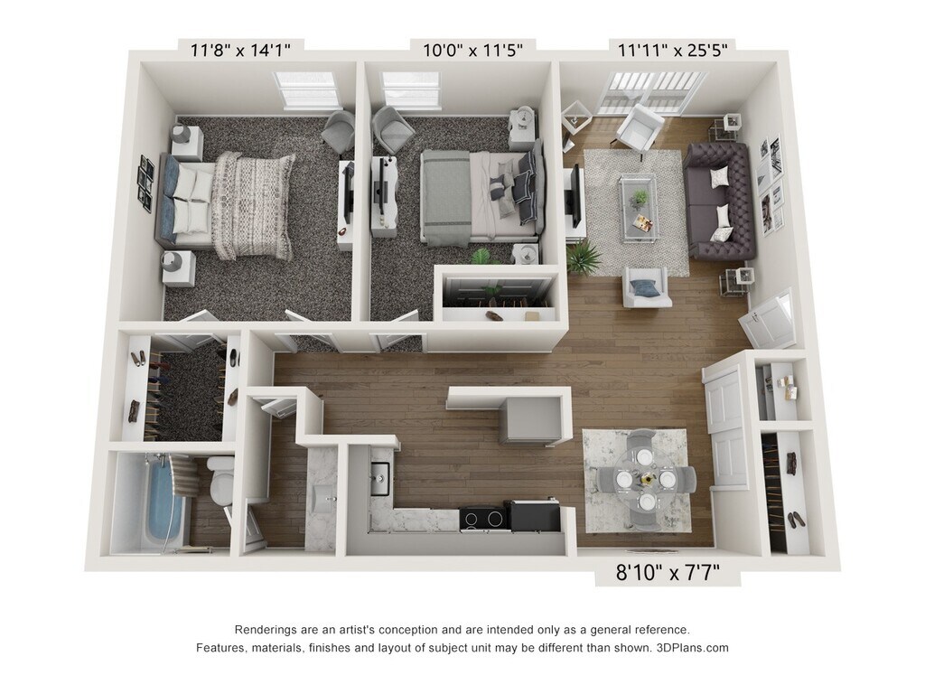 Apartment Model: B3From $1,2572 Bedroom, 2 Bath, 1100 sq ftAvailable Now![]()