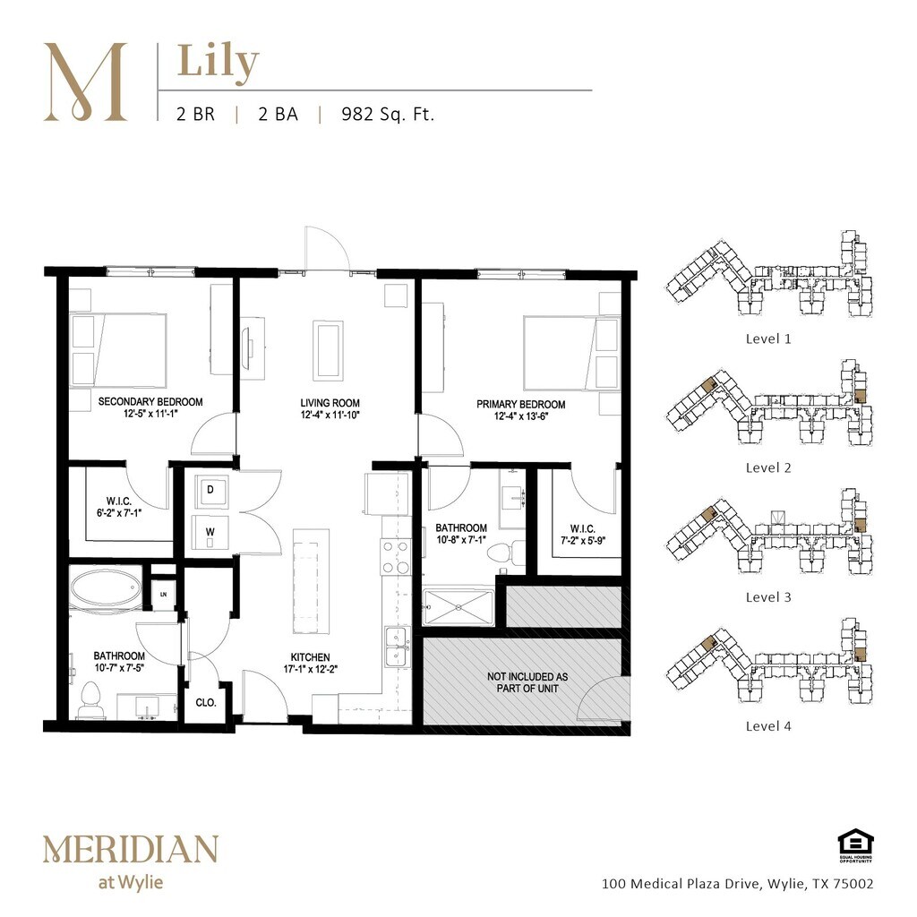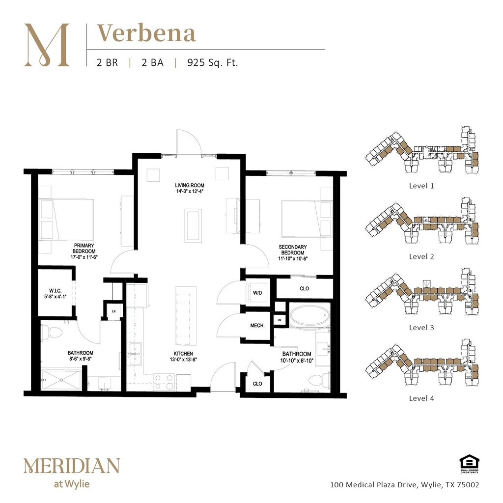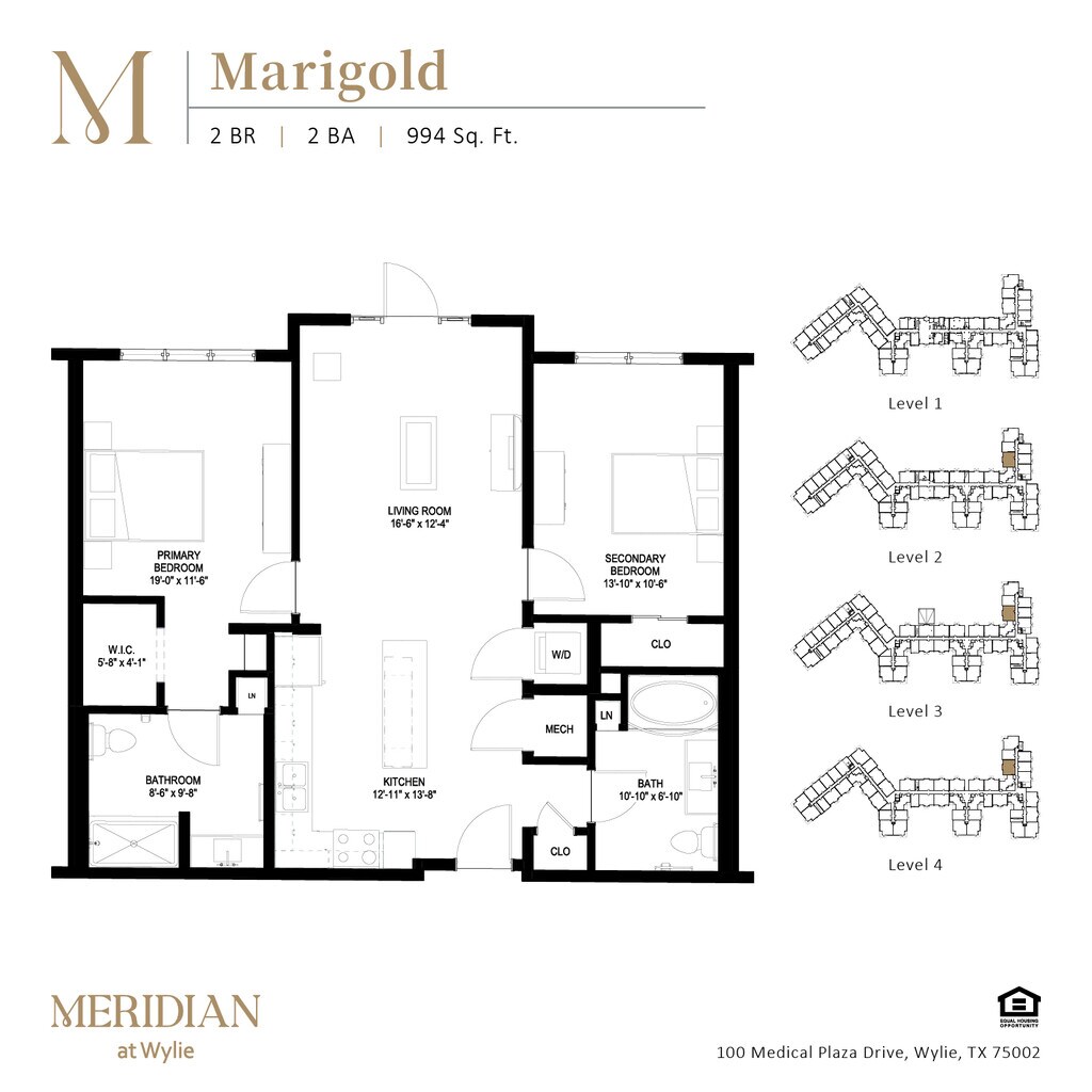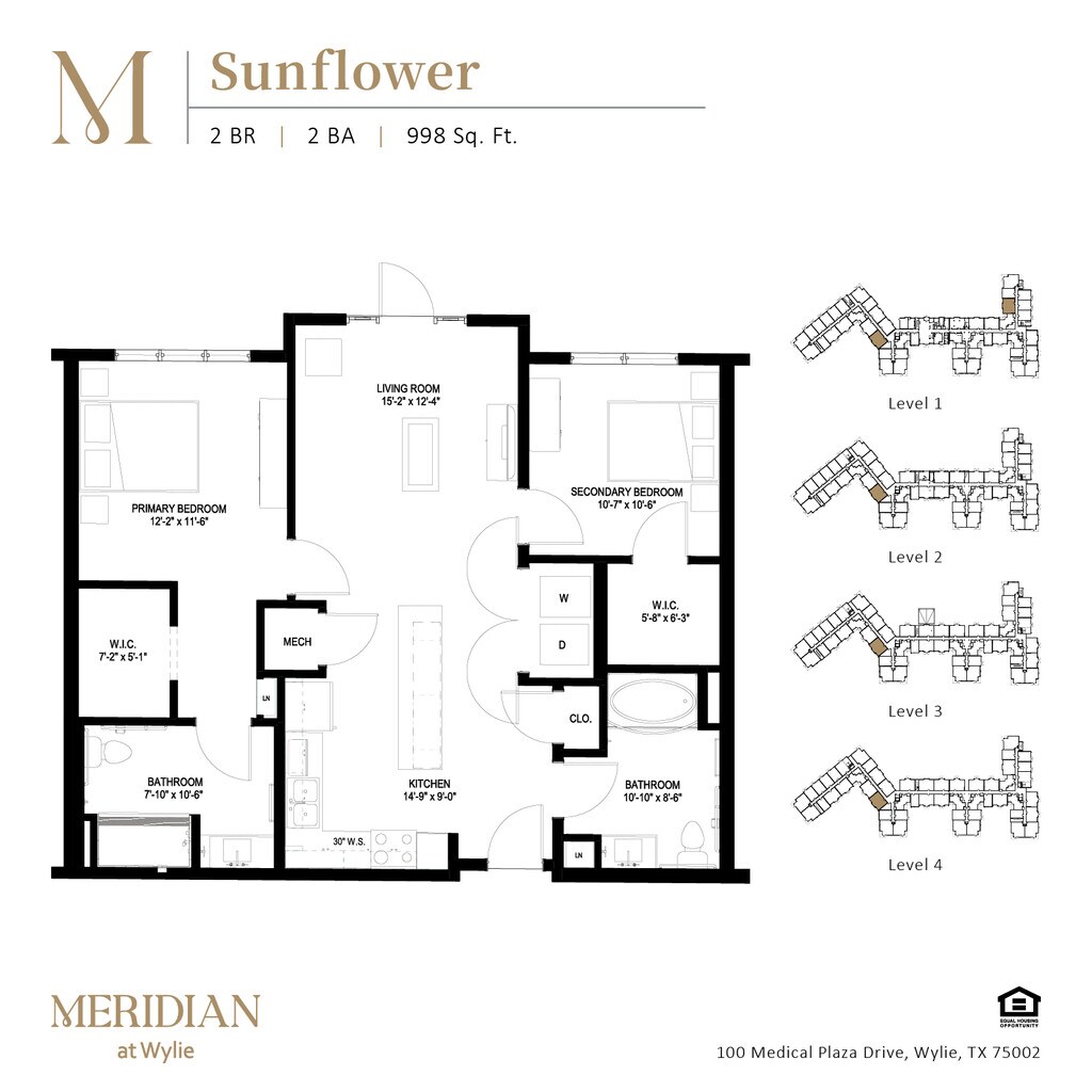 Meridian at Wylie - 55+ Affordable Apartments offers Studio to 2 Bedroom apartments starting from $1,375 and having 618–1,075 sq ft. Here is the current pricing and availability: