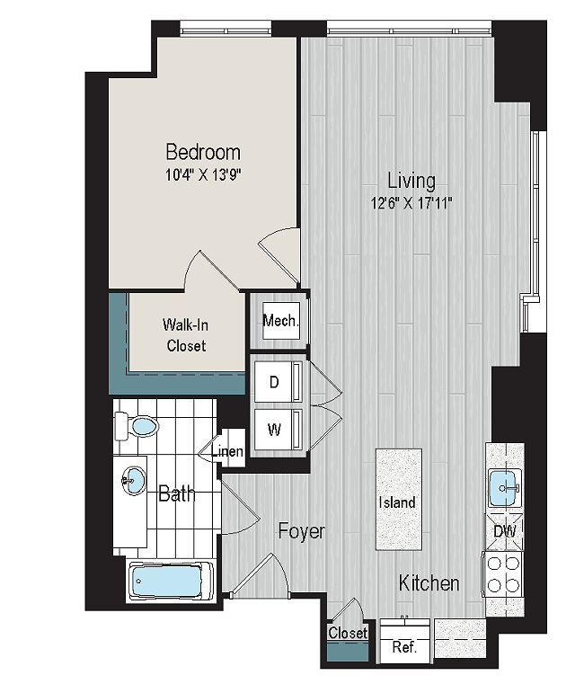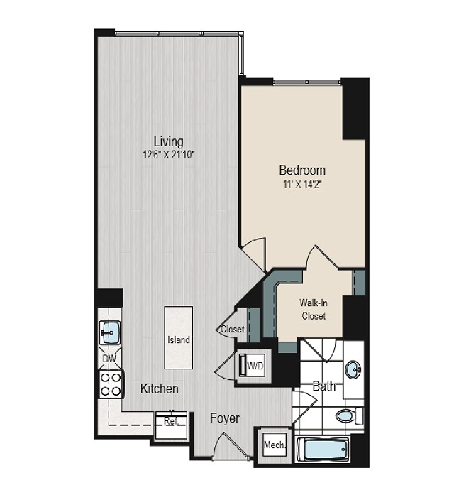 Studio, 1 Bath, 592 sq ftAvailable NowModel Gallery