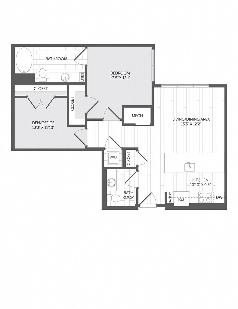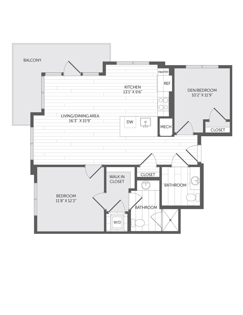 Apartment Model: 1 Bed 2 Bath Den-A7Call For Rates1 Bedroom, 2 Bath, 1127 sq ftUnavailable![]() - 1 Bed 2 Bath Den-A7 - Floorplan 1