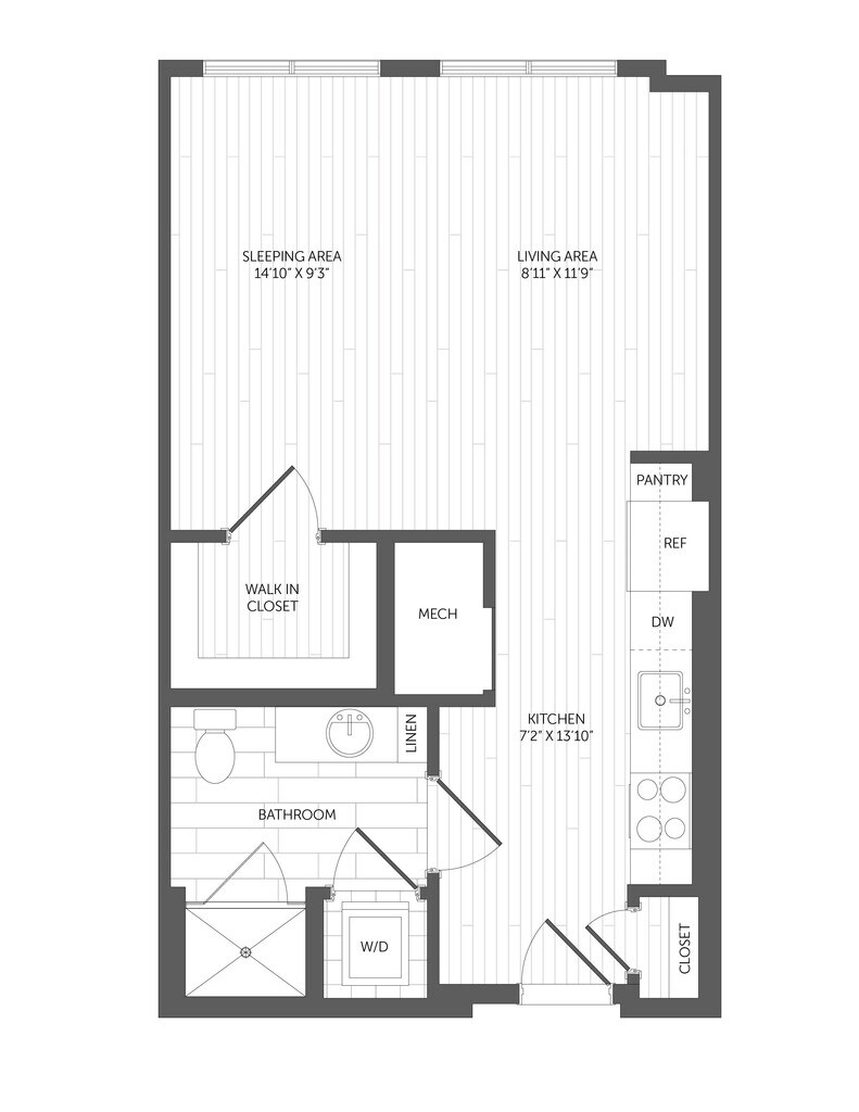 Apartment Model: Studio-S1Call For RatesStudio, 1 Bath, 591 sq ftUnavailable![]() - Studio-S1 - Floorplan 1