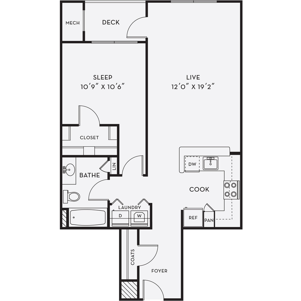 1 Bed, 1 Bath, 682-859 sq ftPlus FeesAvailable NowModel Gallery