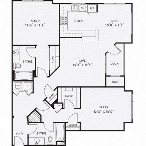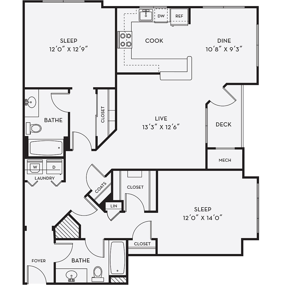 Apartment Model: Two Bedroom Two BathroomFrom $2,9272 Bedroom, 2 Bath, 1208 sq ftAvailable Now![]()