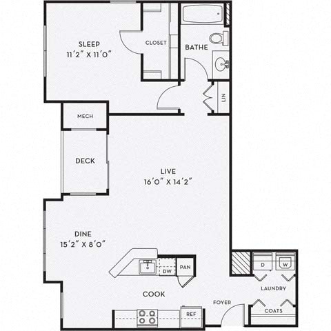 One Bedroom One Bathroom - Floorplan 1 ![]()