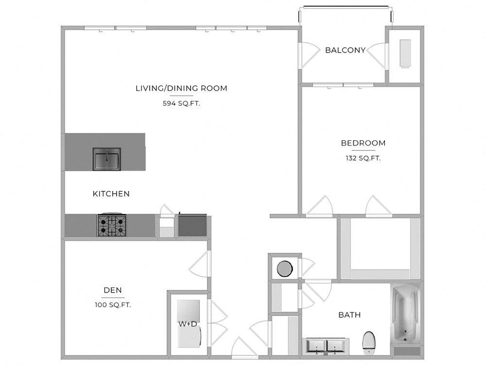 One Bed One Bathroom with Den - Floorplan 1 Apartment Unit: 4206Apartment Model: One Bed One Bathroom with Den$2,4411 Bedroom, 1 Bath, 1010 sq ftAvailable February 11, 2026![]()